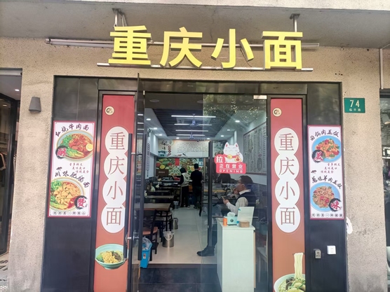 店名:重庆小面,经营二十多年老店,带设备设施转让,接手可以做,性价比高。证件齐全没有行业限制,日流水5k。商务楼小区公寓密集,消费稳定有发展空间。